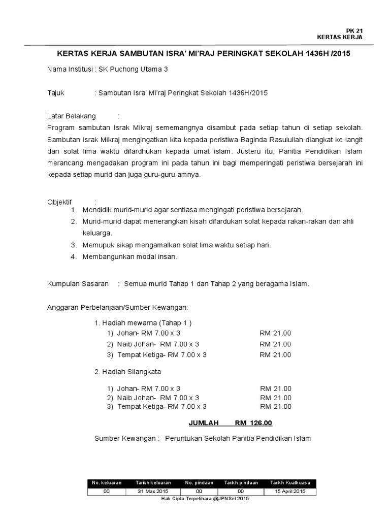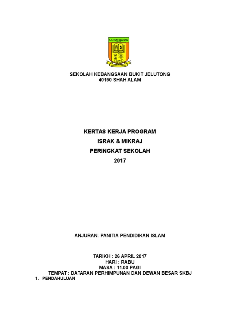 Kertas Kerja Sambutan Isra Mikraj Spsk Pk 21 Pdf