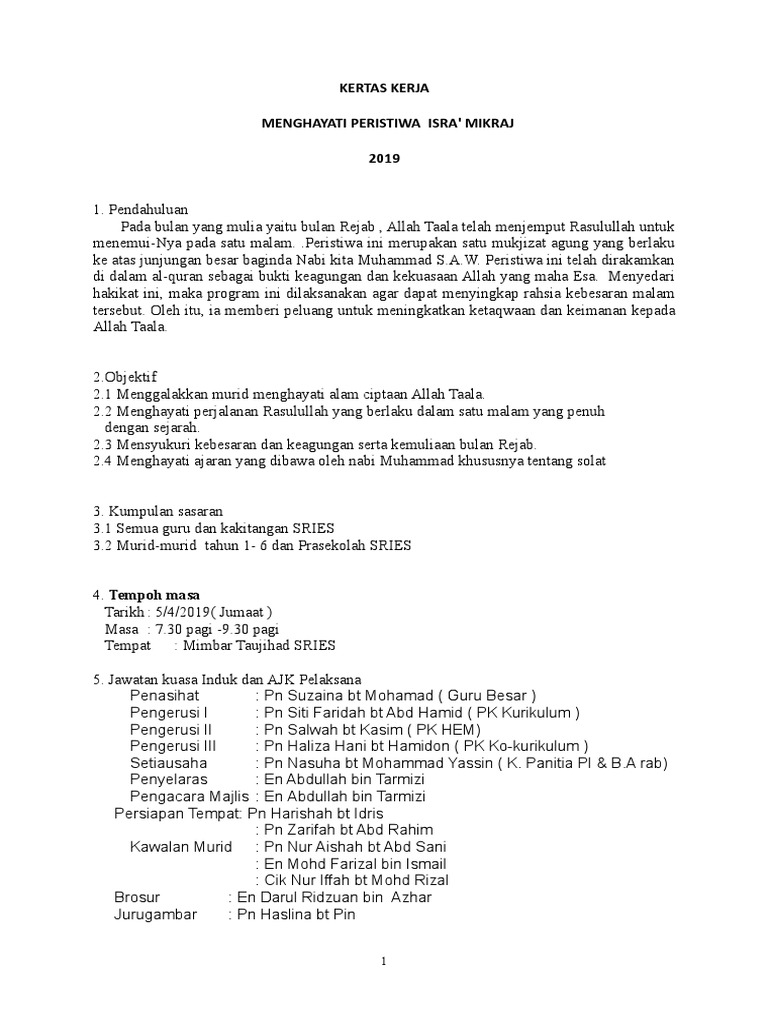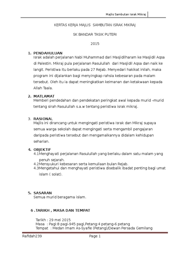 Kertas Kerja Majlis Sambutan Israk Mikraj Pdf