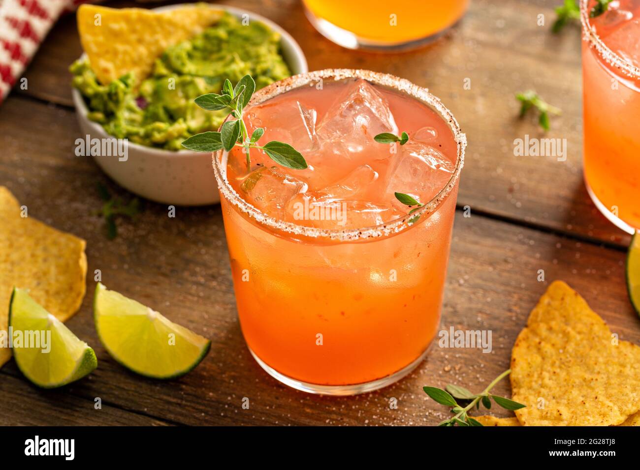 Spicy Grapefruit Margarita With Chips And Guacamole Stock Photo Alamy